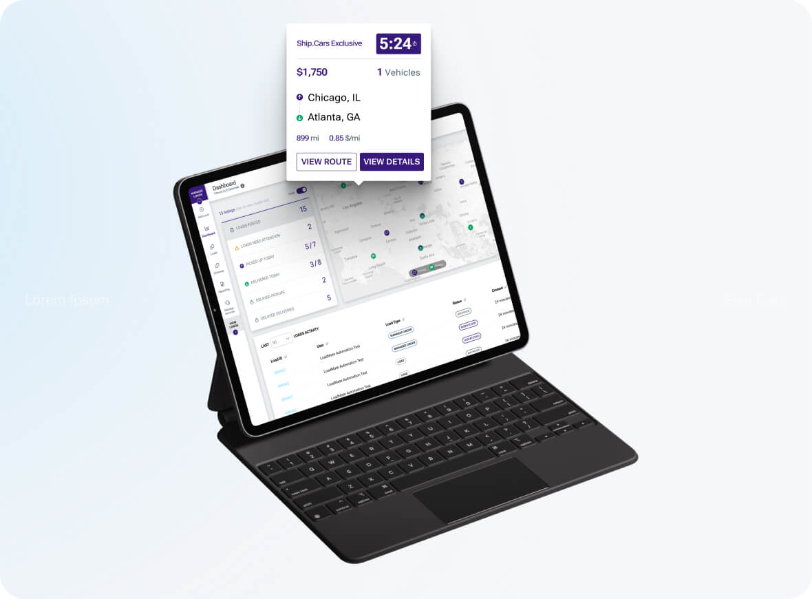 Streamline your shipping operations with Ship.Cars’ fully integrated platform, designed to digitize and optimize your load management process. From seamless load creation and machine-learning-powered vehicle matching to real-time status updates, our interactive dashboard helps you gain visibility and focus on what matters most. With tools to control and reduce costs, competitive carrier rates, and customizable reporting, Ship.Cars ensures efficient, data-driven decision-making for your transportation needs.