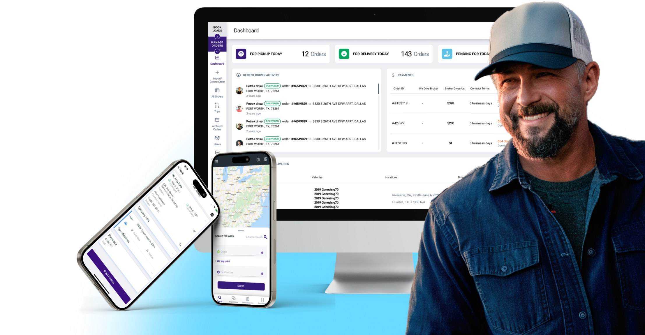 The SmartHaul TMS is a comprehensive solution that streamlines carrier operations by offering features such as load management, trip-building and real-time tracking. It helps carriers improve efficiency, reduce paperwork, and enhance profitability by automating processes and giving you full visibility into your car-hauling business.