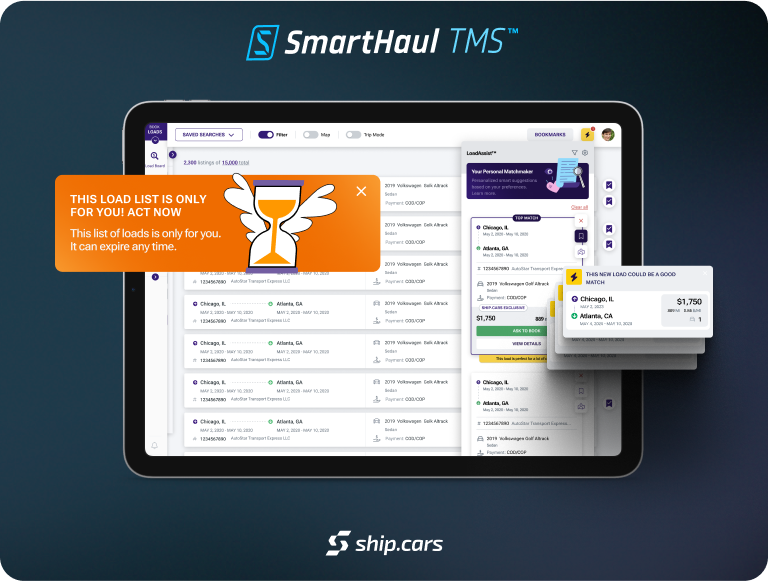 SmartHaul TMS by Ship.Cars gives you everything you need to run your business. It simplifies tasks like route optimization and load management, enhances profitability with AI-powered tools, and provides real-time updates. This system is ideal for carriers seeking to streamline and automate operations and increase efficiency.